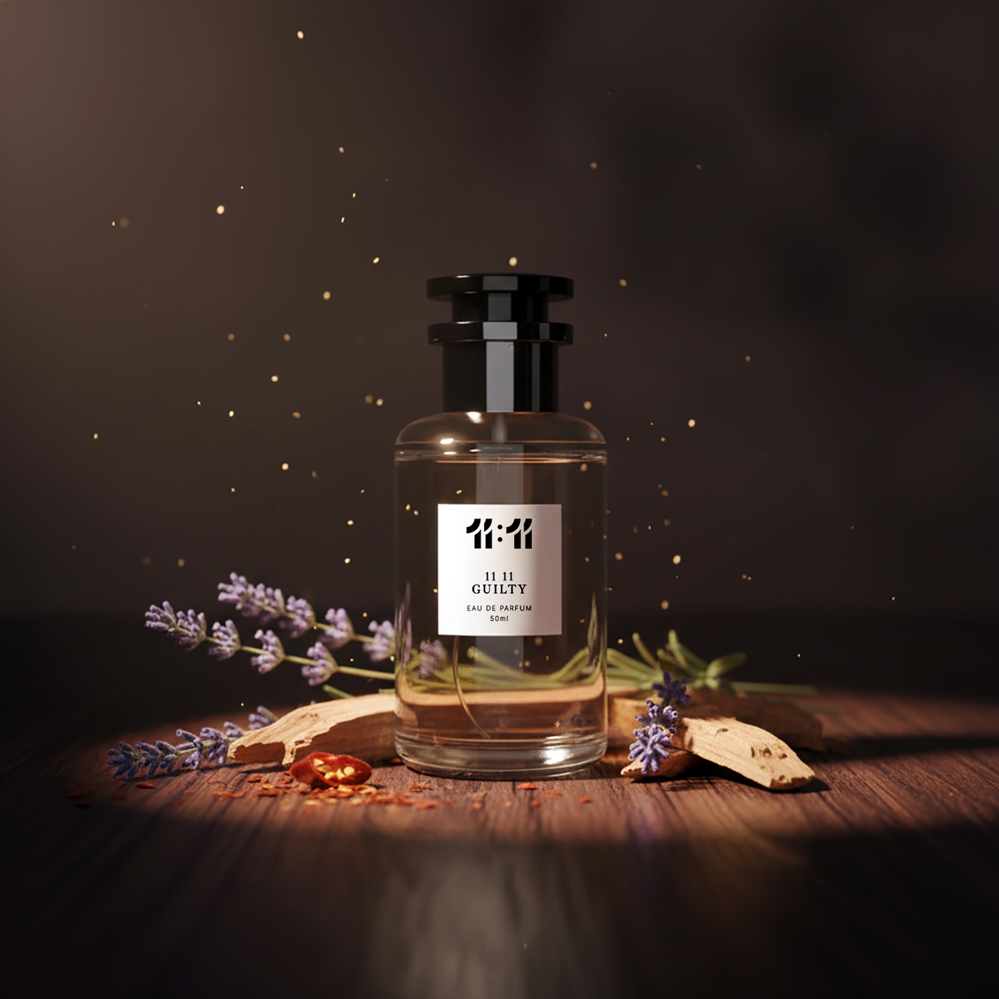 11 11 جيلتي هو عطر جريء وجذاب يمزج بين اللافندر المنعش، والفلفل الحار الحار، وخشب الأرز الدافئ.