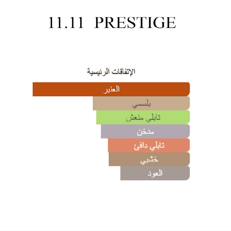 وشحن مجاني11 11 پرێستیژ بۆنێکی بوێر و ئاڵۆزە کە عودی دوکەڵاوی و کەهەبی گەرم و ئۆریگانۆی بەهارات لەگەڵ دەستێک لە ڤانێلای کرێمدار تێکەڵ دەکات. ئەم بۆنە سەرنجڕاکێشە نهێنی و هێز بەرجەستە دەکات، تەواو گونجاوە بۆ ئەو کەسانەی کە ڕەنگینیی بێ کات لە باوەش دەگرن.