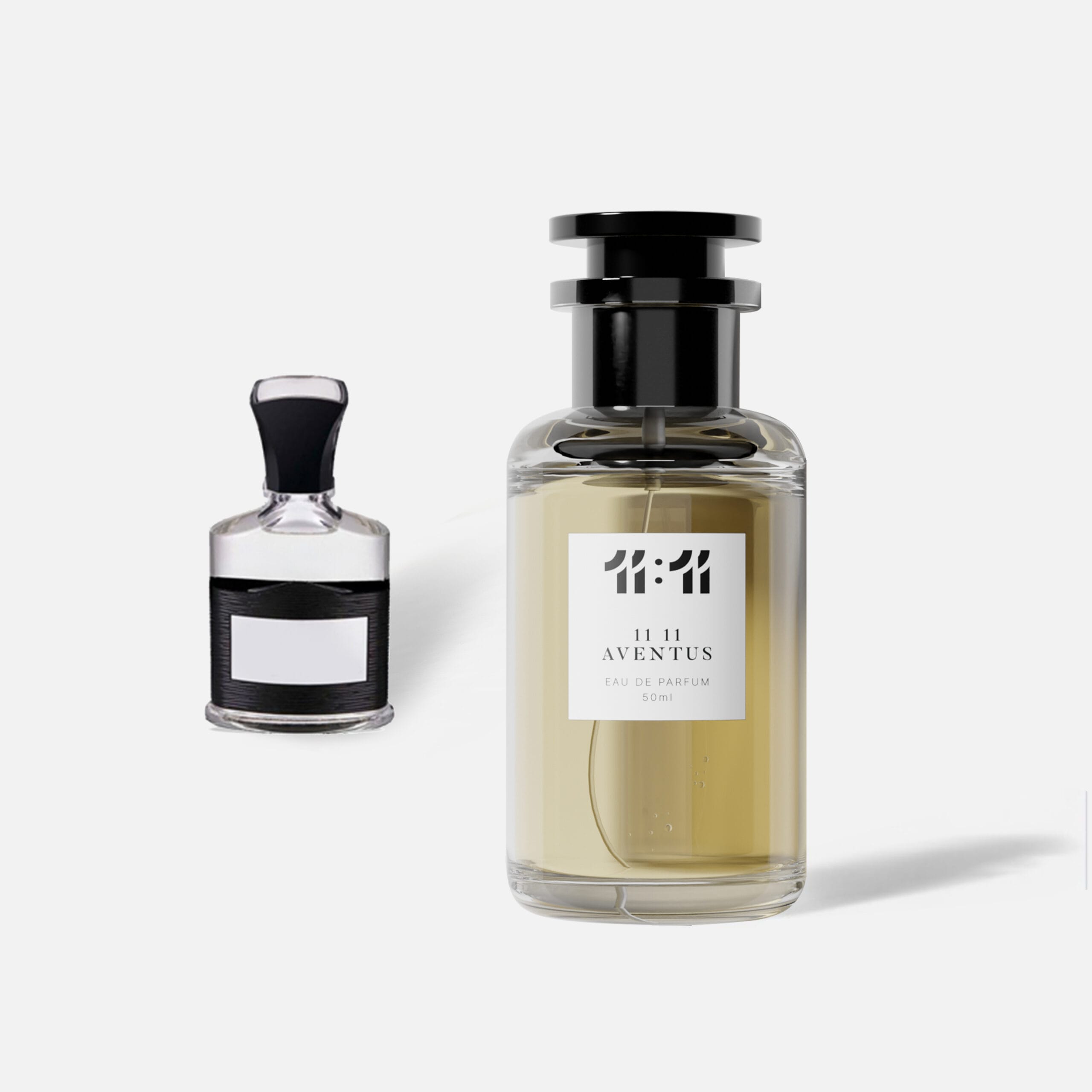11 11 Aventus is a bold and dynamic fragrance that blends crisp apple, smoky birch, and rich ambergris. This iconic scent embodies strength and ambition, perfect for those who aim to conquer every challenge.