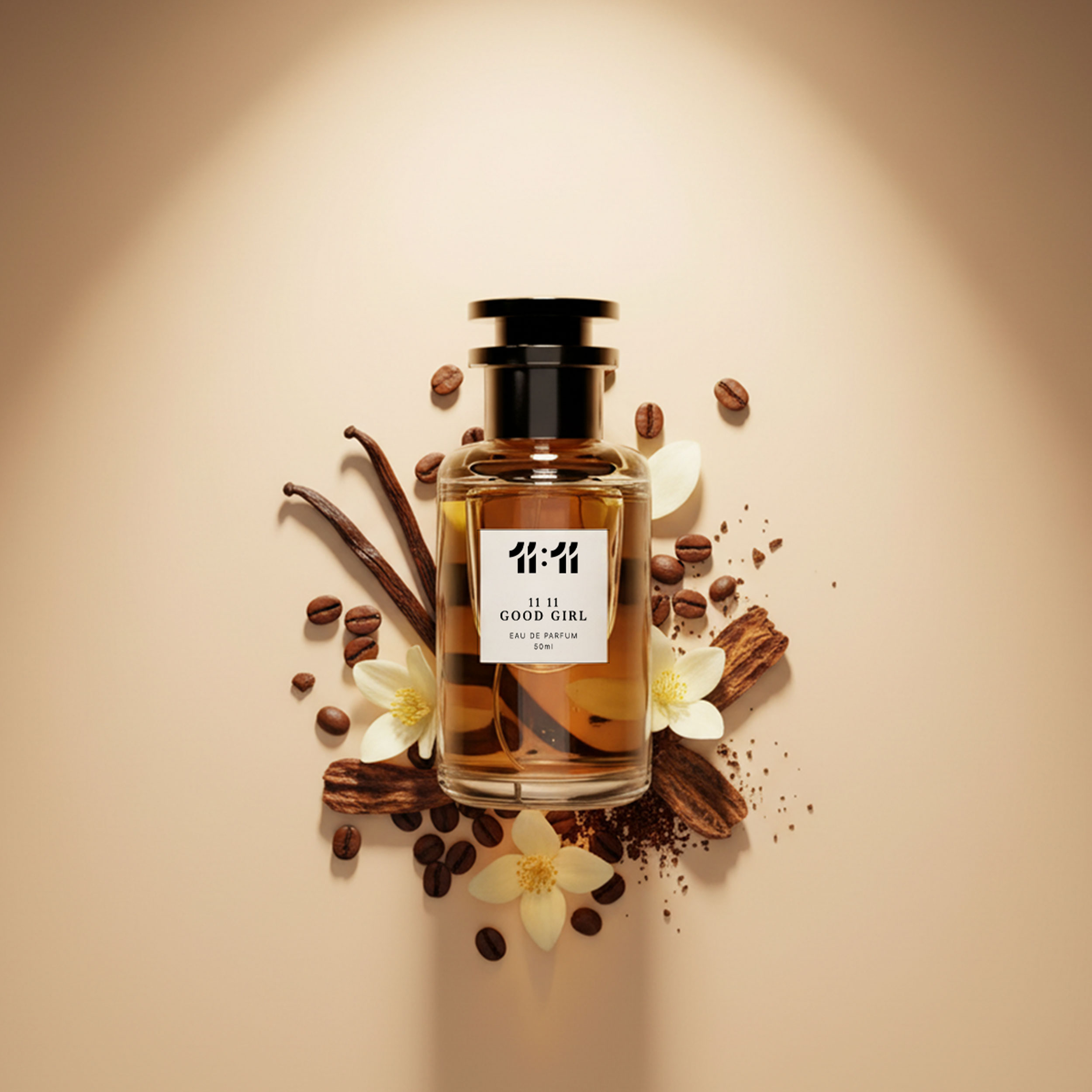 11 11 Good Girl is a bold and alluring fragrance that blends rich coffee, sweet vanilla, and warm tonka bean with a hint of jasmine. This captivating scent celebrates confidence and elegance, perfect for unforgettable nights.