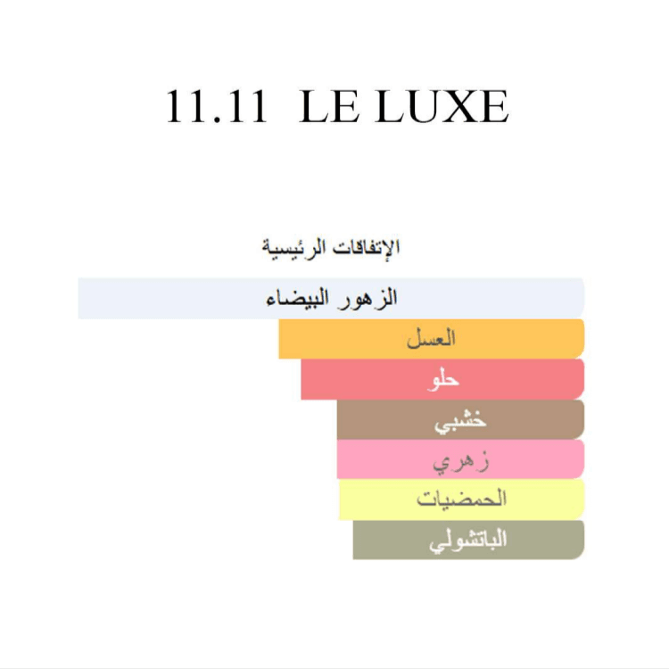 11 11 Le Luxe is a radiant and luxurious fragrance that combines delicate orange blossom, rich honey, and warm cedarwood. This enchanting scent embodies sophistication and timeless elegance, perfect for unforgettable moments.