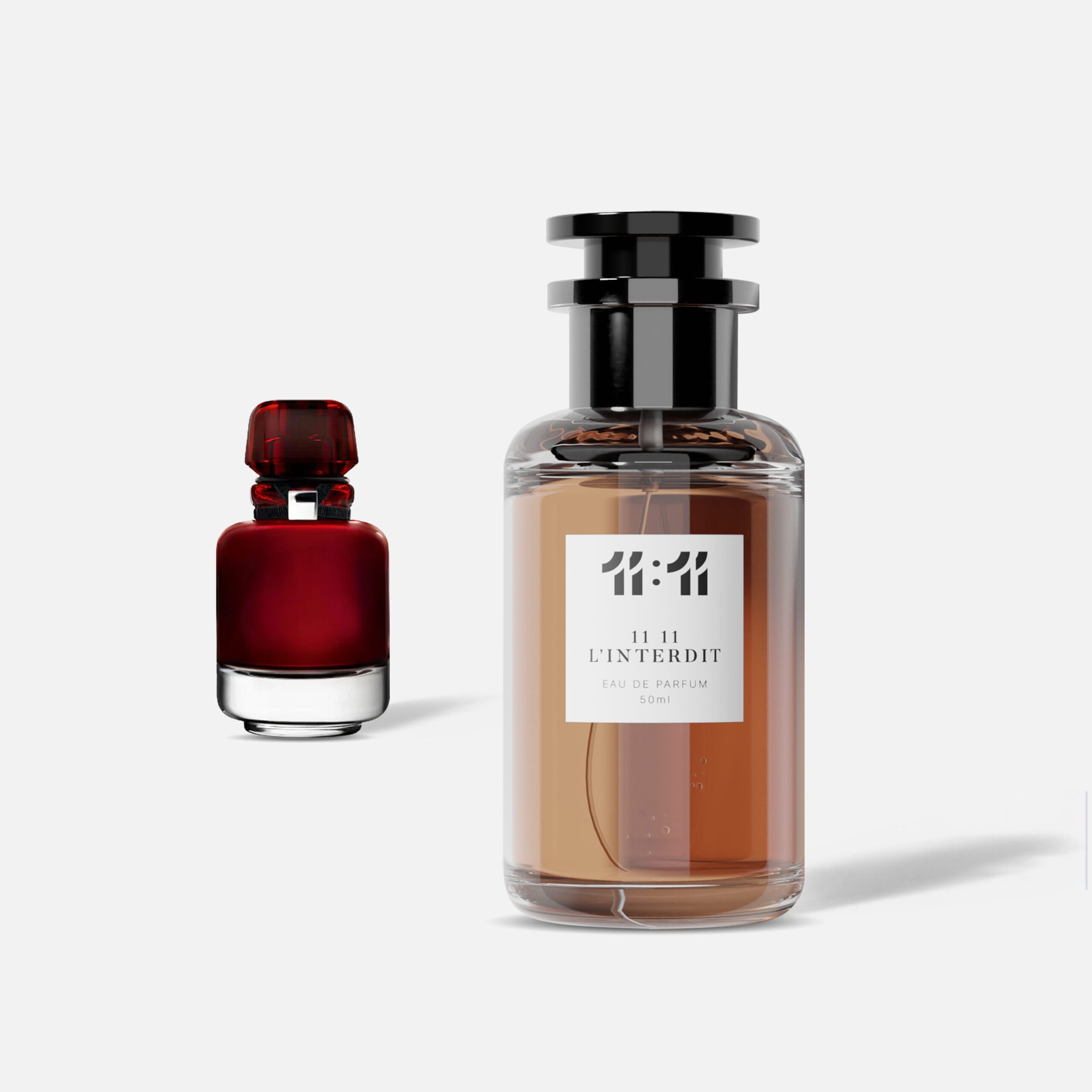 11 11 L’Interdit is a daring and sensual fragrance that combines spicy ginger, velvety tuberose, and warm patchouli. This bold scent celebrates mystery and elegance, perfect for unforgettable moments.