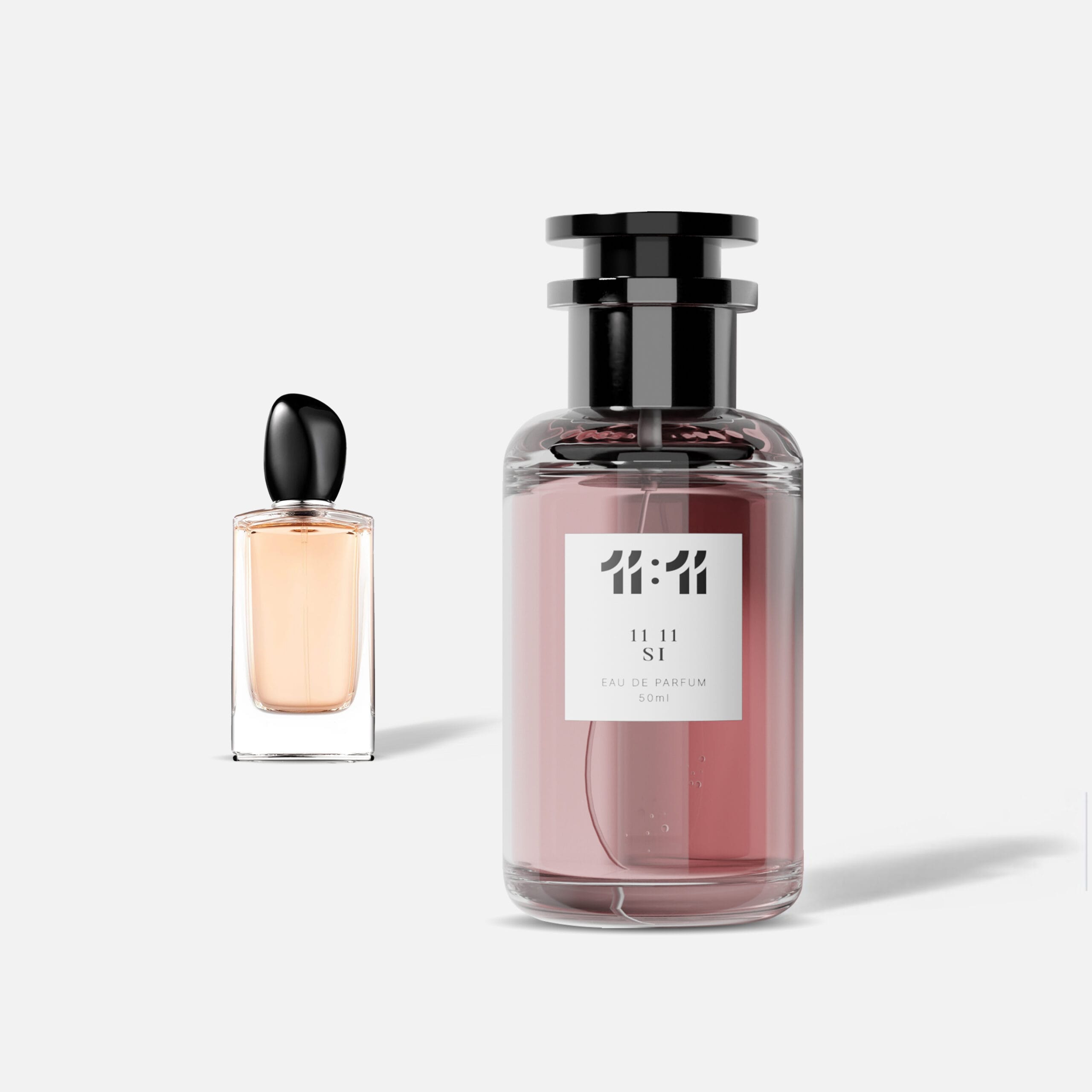 11 11 Si is an elegant and modern fragrance that blends blackcurrant nectar, soft florals, and warm vanilla. This sophisticated scent celebrates strength, grace, and the essence of femininity.