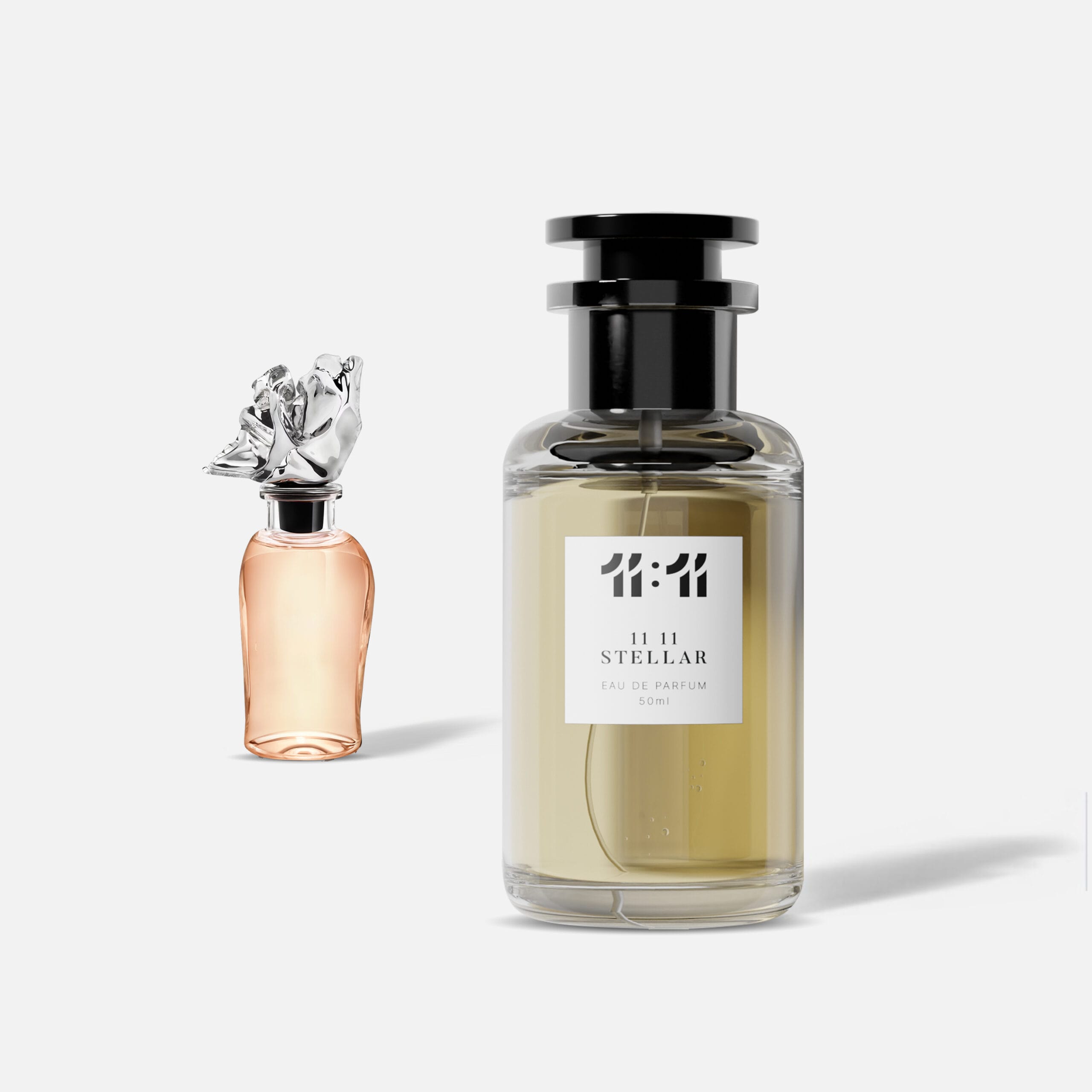 11 11 Stellar is a radiant and celestial fragrance that blends sparkling citrus, creamy orange blossom, and warm amber. This luxurious scent embodies elegance and timeless sophistication, perfect for those who embrace the beauty of the stars.