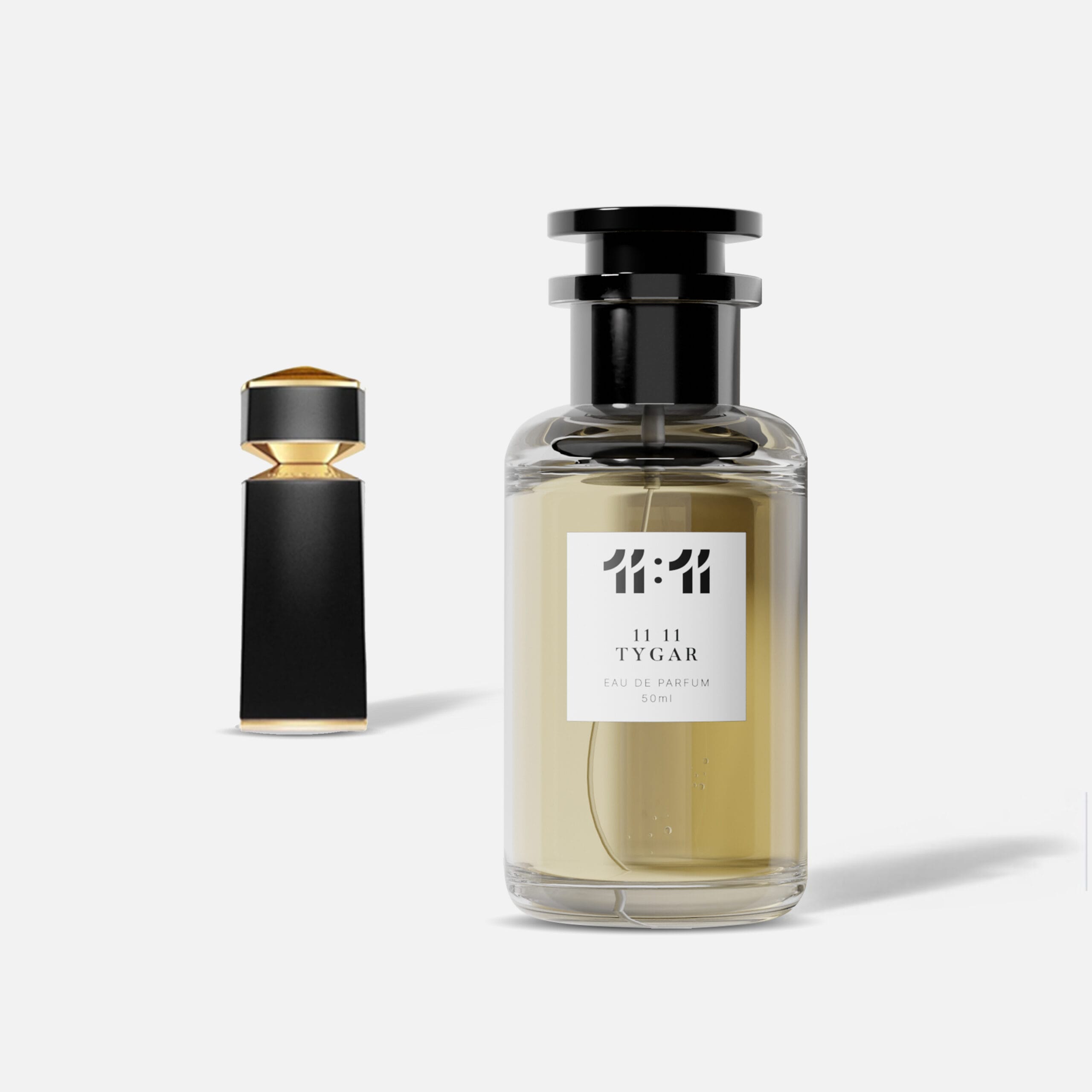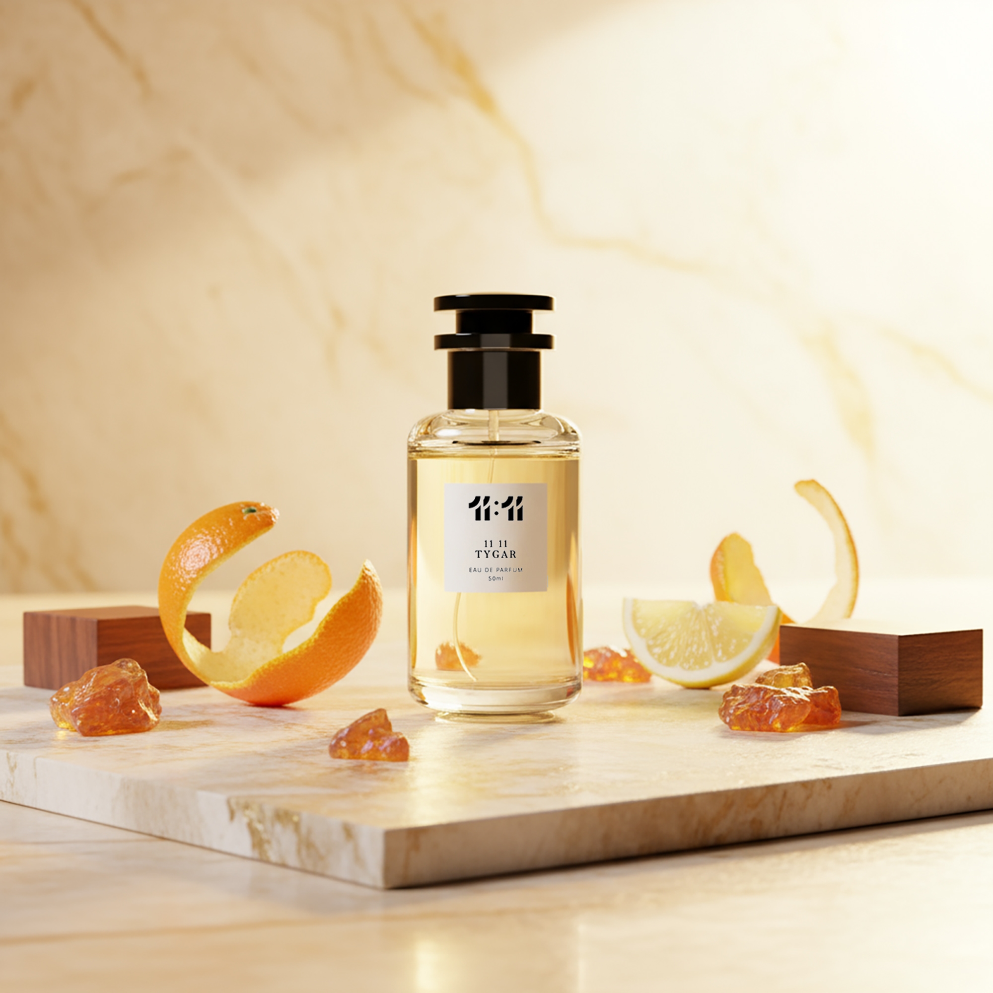 11 11 Tygar is a vibrant and magnetic fragrance that blends sparkling citrus, warm amber, and earthy woody notes. This bold and radiant scent embodies energy and charisma, perfect for those who dare to stand out.